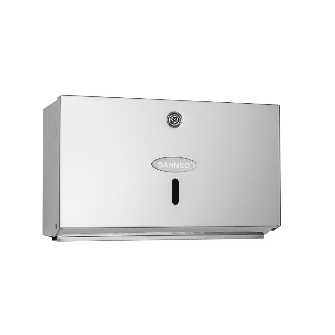 Podajnik na ręcznik PSP 300 służy do wygodnego pobierania pojedynczych ręczników składanych bez konieczności dotykania podajnika. Swoje zastosowanie znajduje w gabinetach zabiegowych, toaletach oraz miejscach użyteczności publicznej. Wszędzie tam gdzie zaistniała potrzeba mycia rąk.