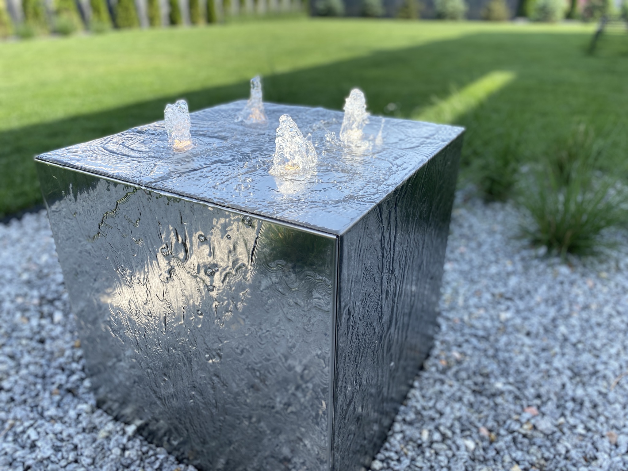 Fontanna Water Cube to sześcian z najwyższej jakości stali nierdzewnej. Służy jako ozdoba w ogrodach, parkach oraz domach.